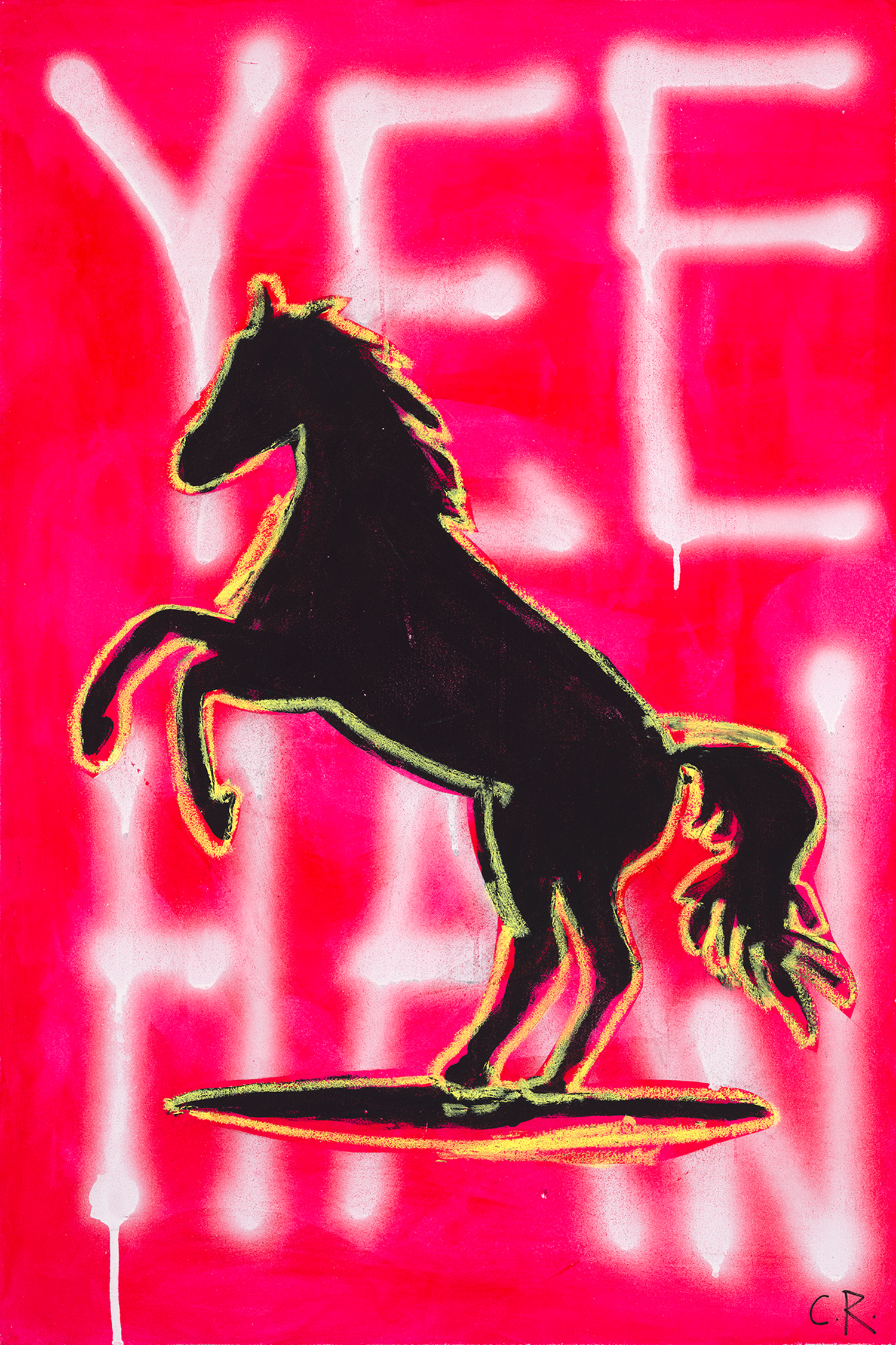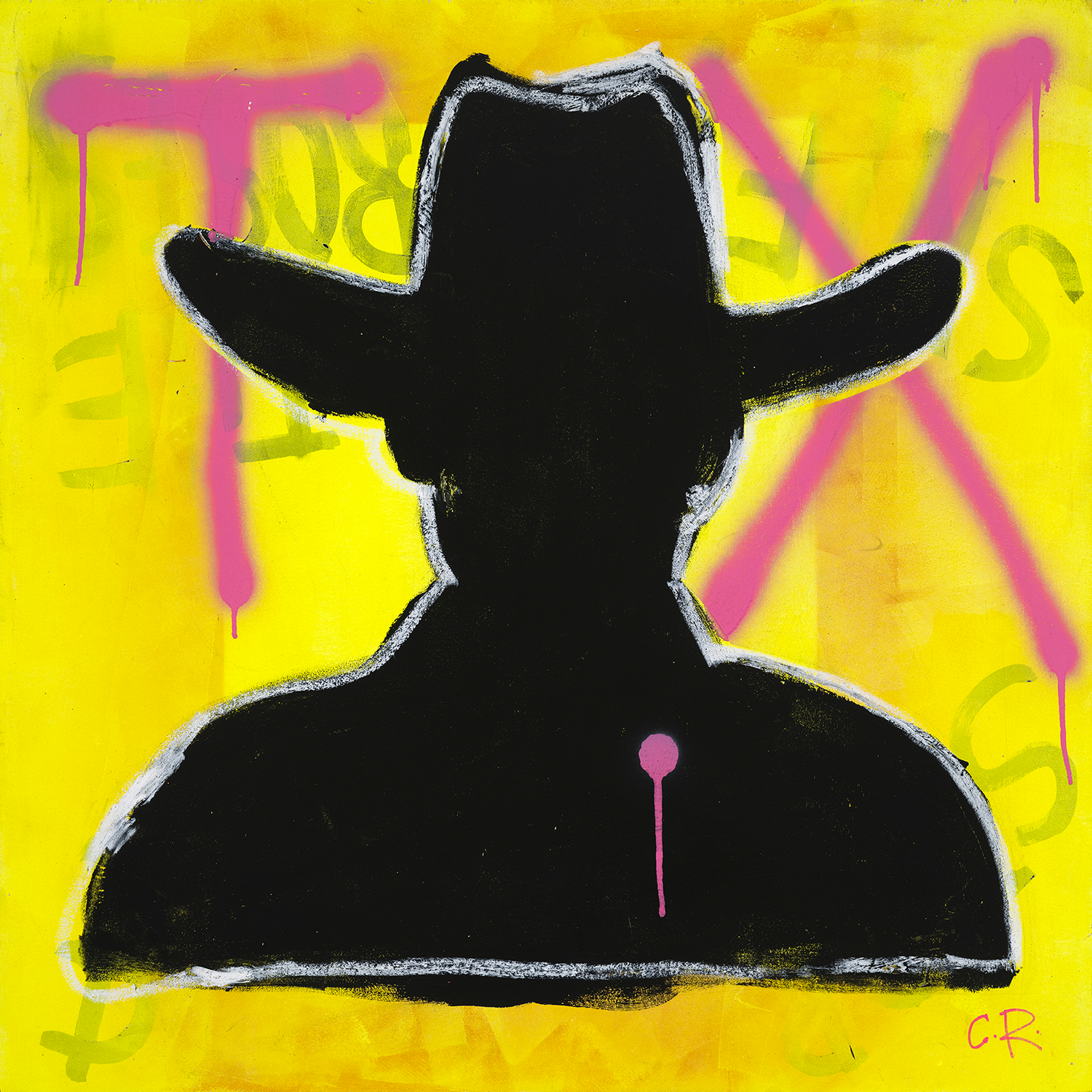 An ongoing study in Western pop art. In a region where traditional cowboy iconography dominates, this series reimagines the visual language of the American West through bold neon palettes, amplified symbolism, and street-art-inspired tagging—treating Western mythology as living culture rather than nostalgia.